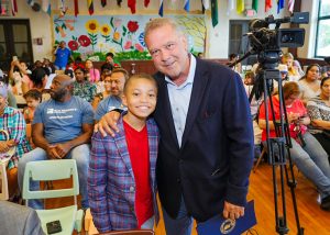 YONKERS – Yonkers Mayor Mike Spano recently joined Yonkers Board of Education President Dr. Rosalba Corrado Del Vecchio, Superintendent of Schools Aníbal Soler, Jr., public officials from the Yonkers City Council, Westchester County and the New York State Assembly, Rosemarie Ann Siragusa Principal Melanie Vancoland event sponsors to present 450 backpacks, filled with school supplies, to the students at Rosemarie Ann Siragusa School as part of the Mayor’s annual “Backpack to School Drive.”