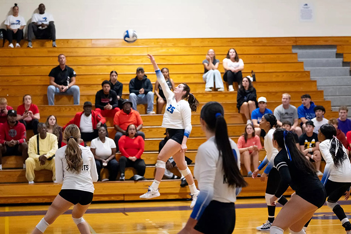 St. Joe’s got off to another good start, taking a quick 10-4 lead over the Mount. The Knights were down all set, but kills from Jonaiya Williams and Brooke Lavelle cut their deficit to just 2, 17-15, late in the set. The Golden Eagles still held the lead, and once again were up 24-19 at match point. The Knights once again attempted a late comeback, coming up just short as Long Island won the set 25-23 and forced a fifth set.