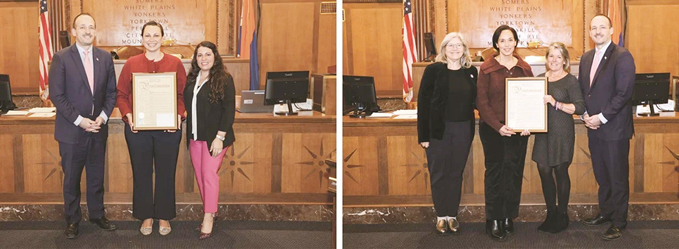 Board Chairman Vedat Gashi (D–New Castle, Ossining, Somers, Yorktown), convened the ceremony and said, “Tonight, we recognize two honorees whose dedication and advocacy have made a meaningful and lasting impact on women and families in Westchester County. Celebrating Women’s History Month reminds us of the importance of spotlighting women’s leadership and ensuring that their accomplishments receive the acknowledgment and support they deserve.”